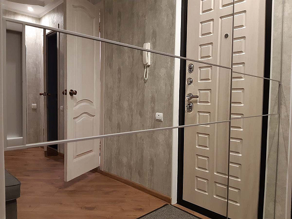 Такой визуальный эффект получается за счет узкой рамки, отсутствия видимых верхних и нижних направляющих, а горизонтальное деление в центре создало эффект расширения помещения. Такой шкаф установил себе домой наш главный технолог Владимир П. и протестировал на себе качество и надежность дверей NOVA (НОВА). Обращайтесь!