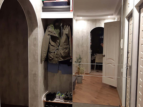Найдите на фото шкаф. С трудом? Это потому, что раздвижные двери-купе системы NOVA (НОВА) с зеркалом растворяются в пространстве. Шкаф в прихожей есть, но вы его не сразу заметите.