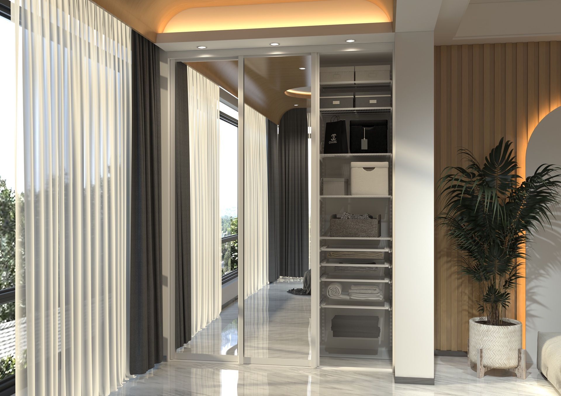 Мы производим гардеробные, шкафы-купе, межкомнатные перегородки и двери на заказ. Дизайн-проект гардеробной, расчет и заказ, включая доставку и монтаж можно оформить в наших салонах.